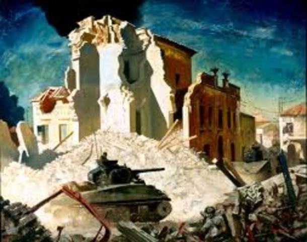 After many battles Canadians reach rome.