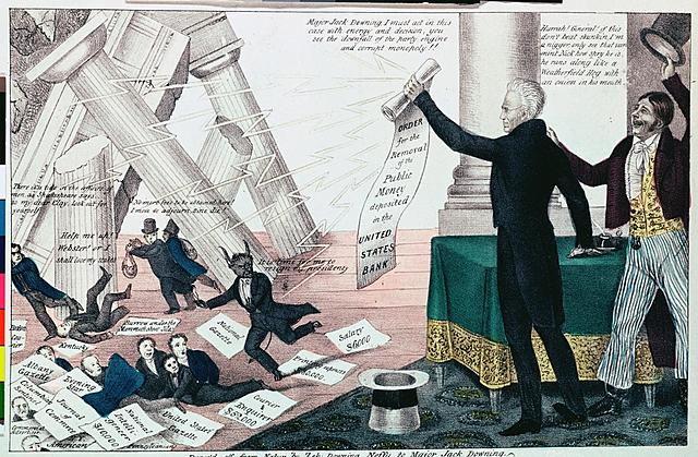 Jackson began by taking nearly all the money from national reserves and distributing it to state "pet" banks. He thought that getting rid of the bank's money would cause it to collapse faster. It worked. The national bank collapsed at a rate that would lead the country into an economic crisis.