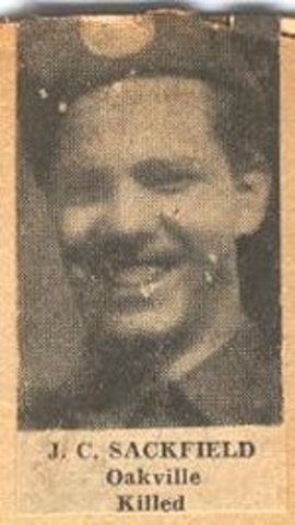 James Sackfield By BriConn Sep 9, 1923 Naissance Toronto, Ontario Jul 18, 1930 Mort de son Pere Sidney Sackfield Jun 25, 1937 Fin de son education formelle Ecole Perth Avenue, fini la 8ieme annee Period: Sep 1, 1939 to Sep 2, 1945 Deuxieme Guerre Mondiale Jul 1, 1940 Enregistement dans la Militaire Oakville, Ontario Dec 16, 1942 Marier Evelyn Beatrice Joan Sackfield Londres, Angleterre Dec 8, 1943 Naissace de son fille, Carol Sackfield Jun 4, 1944 Jour J Aug 11, 1944 Mort