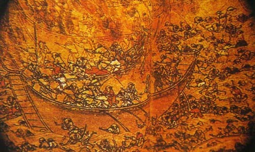 Korean naval general, Yi sun shin, with 53 ships lured 63 Japanese vessels and surrounded them in a semi circular formation called "crane wing". Out of 63 ships only 4 ships survived, 47 were destroyed and 12 were captured by Koreans. Image source: http://cfile1.uf.tistory.com/image/1601A1054BFF3AD2145155