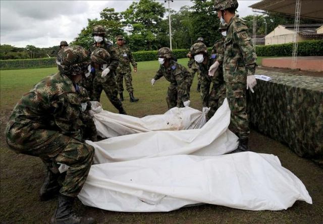 Alias "Tiro Fijo, Manuel Marulanda "Fue el Comandante en Jefe y fundador de las FARC. Muere por causas naturales en el 2008. Sobre Manuel Marulanda pesaban 150 órdenes de captura, más de 20 condenas por muchos crímenesy una "circular roja" de la Interpol. Fue sepultado en los límites del río Pato y el Guayabero, el territorio histórico entre Caquetá y Meta y su féretro fue custodiado por 3 anillos de seguridad. El Departamento de Estado de los Estados Unidos ofrecía una recompensa de hasta $ 5.0