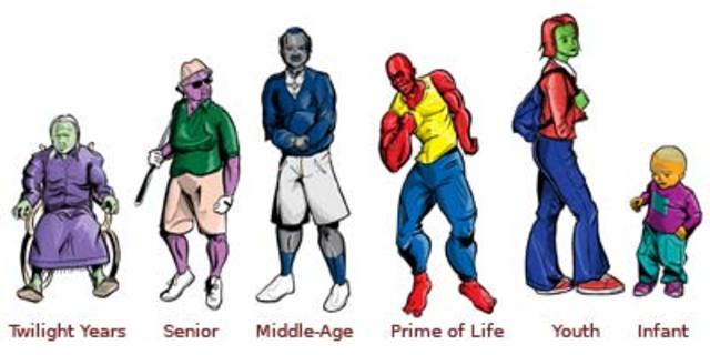 May become broody and be expecting a baby. Slight loss of elasticity in the skin later on in stage, resulting to lines and wrinkles. May gain weight, for women most likely in hips and thighs and men in the abdomen. Menopause can start from any age from now for women. Hair will become thinner and grey hairs will appear. Eyesight deteriorates and reaction time slows as they get nearer to 65.