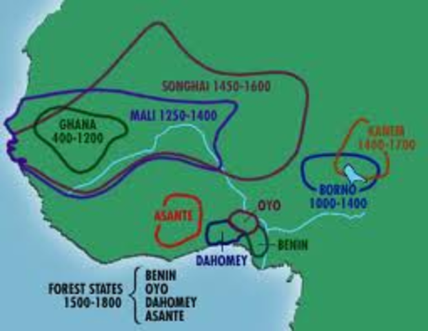 The timespan of the empires of Ghana,Mali,and Songhai.