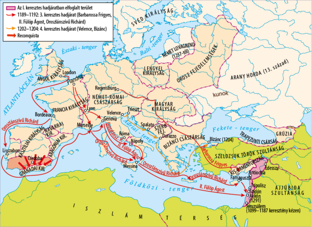 A harmadik keresztes hadjárat a 12. század végén zajlott, és a keresztények nagyobb fókuszt helyeztek a Szentföld elfoglalására. A hadjáratot a német-római Császár, Frigyes Barbarossa, III. Philippe francia király és I. Richárd angol király vezette. -