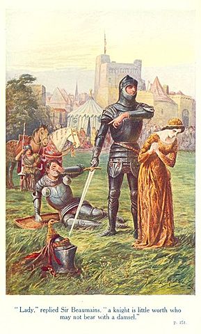 Sir Dmas calls King Arthur to come and see him. And he told him that if he could fight for him. King Arthur said yes, but on one condition, if he won the fight he took the three knights who were in his very room.And Sir Damas calls a gentleman to bring him the sword he should fight with. King Arthur thought it was the Sword Escalibur.