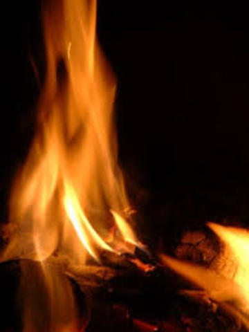 Homo sapiens decouvre le feu. Le principe du feu est declairé dans le noir .