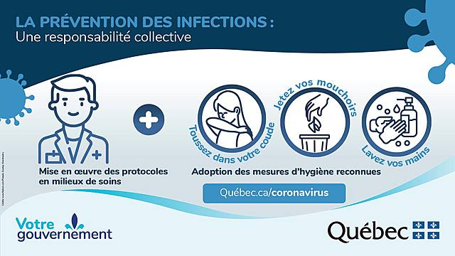 Interdiction de visites non essentielles dans les CHSLD, hôpitaux et centres pour personnes âgées. Les personnes de 70 ans et plus sont appelées à rester à la maison. Les vacanciers sont priés de rentrer au pays