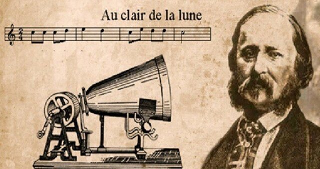 La canción que tuvo el honor de convertirse en la primera en ser grabada con aquel revolucionario artefacto fue una tonada popular llamada «Au Clair de la Lune», interpretada por un soprano anónimo el 9 de abril de 1860