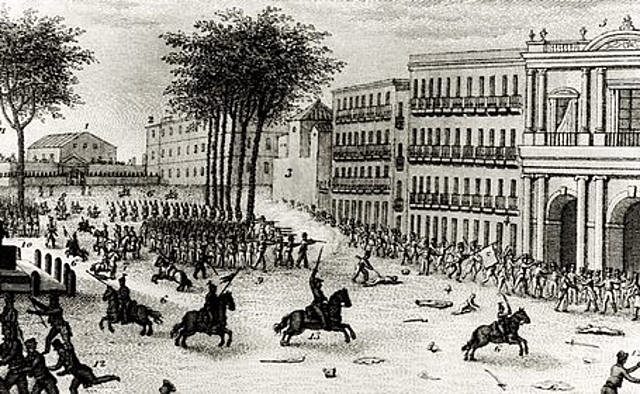 En un primer període, el de la restauració absolutista (1814-1820), Ferran VII decideix prescindir de l'obra legislativa de les Corts de Cadis i reinstaura l'absolutisme. Els liberals seran reprimits i perseguits, però protagonitzaran diverses revoltes de caire insurreccional, els "pronunciamientos". Finalment, triomfarà el de Rafael del Riego l'any 1820. -