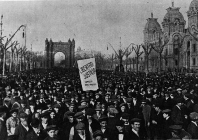 Asesinatos de obreros por las tribus rifeñas, huelga general de anarquistas, socialistas y republicanos que derivó a un estallido insurrecional y fusilamiento de Francesc Ferrer y Guardia.