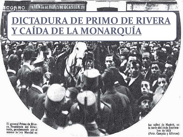LA CRISIS DEL SISTEMA DE LA RESTAURACIÓN (II): LA DICTADURA DE PRIMO DE RIVERA Y LA CAÍDA DE LA MONARQUÍA (1923-1931). TRANSFORMACIONES ECONÓMICAS Y CAMBIOS SOCIALES EN EL PRIMER TERCIO DEL SIGLO XX