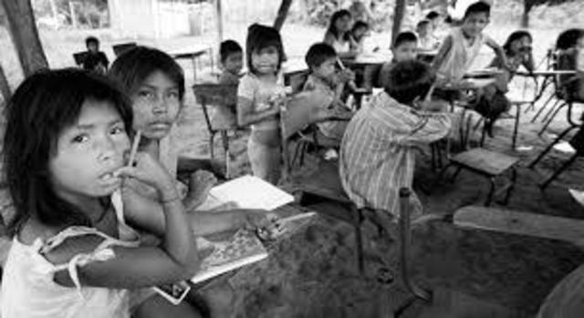 Unas vez en nuestras tierras, los españoles empiezan a explotar a nuestra población y a apropiarse de nuestro territorio en todos los sentidos posibles, imponiéndonos su religión , sus Dioses, imponiéndonos su lengua a través de la implementacion de escuelas indígenas establecidas con el único fin de enseñar el castellano como lengua oficial del nuevo mundo, y la religión católica como dogma principal de sus lacayos.