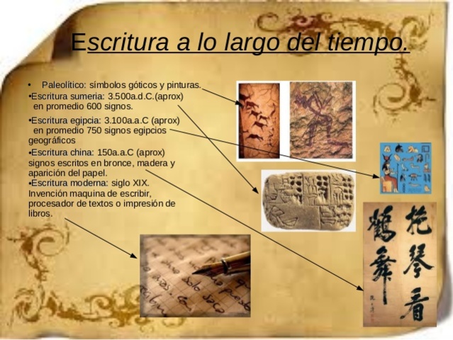Se inventó la escritura que se expresaba por medio de dibujos o símbolos en las paredes de la cuevas por los primeros hombres.