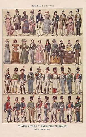 Adopción de los trajes de campos ingleses. La tendencia era hacia lo practico y la simplicidad. Las casaca (Chaqueta) eran sencillas, puños mas angostos y los faldones iban desapareciendo en la parte delantera para permitir mayor comodidad a la hora de montar en caballo, sombrero y copa alta.