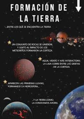 El nacimiento de la tierra comienza con nuestra estrella el sol, el cual estaba rodeado de polvo y piedras.La gravedad hace que las rocas se vayan uniendo y formando una bola gigante de rocas y polvo la cual pronto seria la tierra en un futuro un poco lejano.