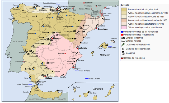El conflicto se inició el 17 de julio de 1936, con el alzamiento de una fracción del ejército encabezada por los generales Mola y Franco, quienes se trasladaron desde el Marruecos Español para ponerse al frente de las operaciones milares, con el propósito de acabar con el gobierno republicano, dirigido en ese momento por la coalición izquierdista del Frente Popular.