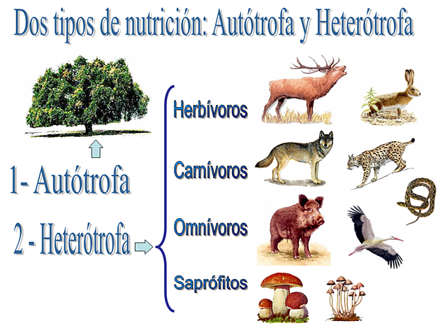 2011: Se divide a la nutrición heterótrofa en 4 tipos: holotrofa, simbiótica, saprófaga y parásita. Dentro del concepto de nutrición autótrofa se distinguen 3 tipos: carnívoros, herbívoros (o fitófagos) y omnívoros.