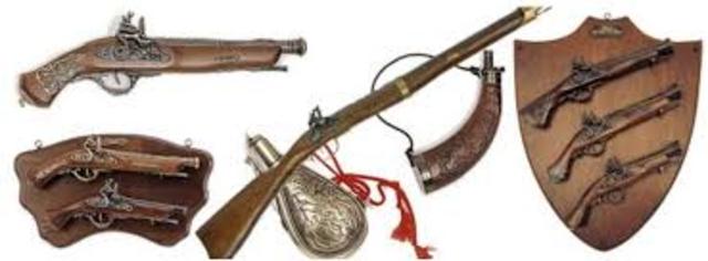 La pólvora fue creada en China para hacer fuegos artificiales y armas, aproximadamente en el siglo IX (9) de nuestra era, aunque no concibieron las armas de fuego como nosotros las conocemos. Los bizantinos y los árabes la introdujeron en Europa alrededor del 1200. La polvora se empezo a usar solo para impulsar balas en los fusiles y arcabuces