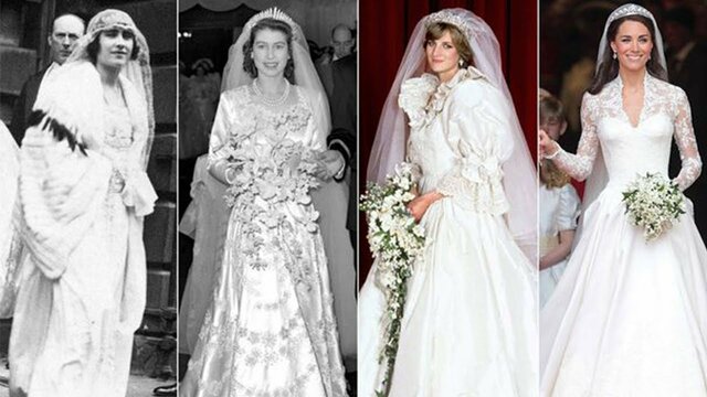 Los vestidos de novia durante este tiempo a menudo se hacían en casa. Esto se debía a que las bodas solían ser de última hora porque los hombres tenían que ir a la guerra. Las mujeres que no hicieron su propio vestido solo usaron un vestido que ya tenían. -