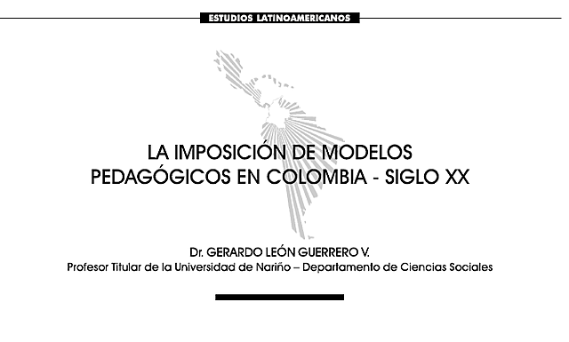 Ref. Bibliográfica: Guerrero V., D. G. (2017). La Imposición de Modelos Pedagógicos en Colombia - Siglo XX. Estudios Latinoamericanos, (10-11), 21-32. Recuperado de https://revistas.udenar.edu.co/index.php/rceilat/article/view/3253