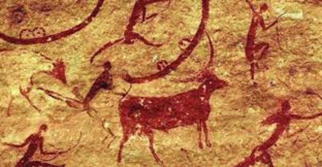 Aparición del fuego. Edad de la piedra tallada, el nomadismo y la aparición de las primeras pinturas rupestres.