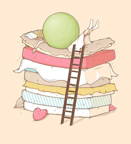 la reina le pone una arveja debajo de veinte colchones y veinte colchas.