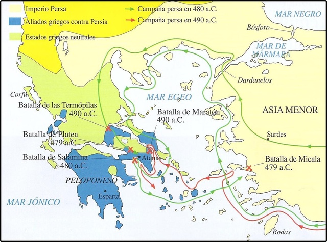 La contesa de més renom en l'antiguitat és la batalla de les Termòpiles, de l'any 480 a. C., en la qual la salvaguarda grega, formada per 1000 hoplitas grecs (300 espartans i 700 tespios), va contenir l'avanç netament superior de l'exèrcit persa al comandament de Jerjes I, rei de l'Imperi aquemènida. Encara que finalment Jerjes I va derrotar als espartans, el seu exèrcit es va veure derrotat al seu torn en la plana de Platea.