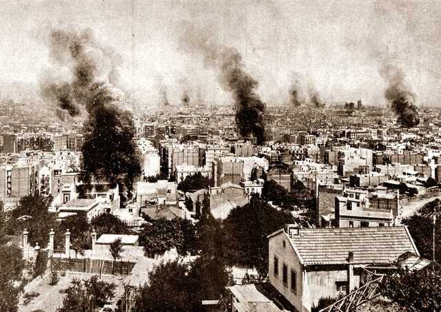A Barcelona s’aixequen centenars de barricades i diferents armeries són assaltades per proveir-se de pistoles i fusells. La violència es va dirigir contra l’església i les propietats eclesiàstiques, especialment contra convents i escoltes religioses. Al cap de poques hores van començar a cremar molts edificis religiosos, alguns clergues van morir.