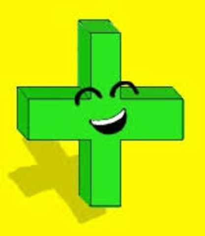 La primera vez que aparece el signo + en un manuscrito podría ser la obra Algorismus proportionum del matemático Nicolás de Oresme escrito entre los años 1356 y 1361. Sin embargo, es posible también que este signo + haya sido escrito por un copista posterior y no estuviese en la obra original.