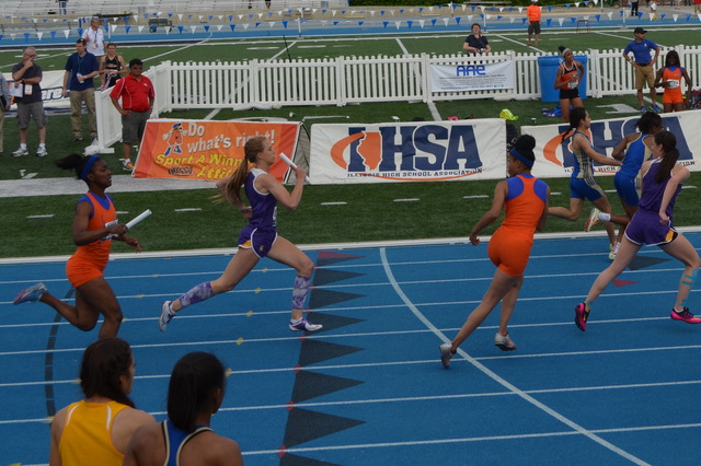 Corrí en el track meet de estado en Eastern Illinois University. Corrí en los eventos de 800 metros y 4x400 metros. Conseguí décimo y noveno y traje mis premios a mi casa.