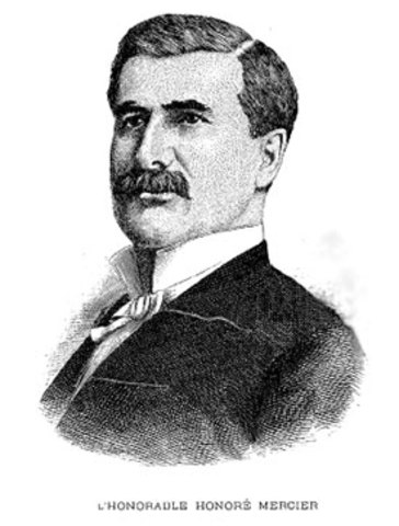 La vie d’Honoré Mercier By momosabb 1840 naissance 1862 devient éditeur du « courrier de St-Hyacinthe » 1865 devient avocat 1871 il se joint au parti national 1872 élu à la chambre des communes d’Ottawa 1879 devient solliciteur général dans le gouvernement Joly 1885 discours pendaison Louis Riel 1887 il devient premier ministre 1890 il est réelu pour un second mandat 1894 il décède
