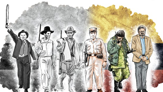 - Fundan las FARC (campesinos), retando al Estado Colombiano y a sus élites hasta noviembre del 2016. También el ELN interviene acá.
