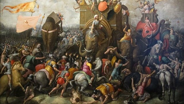 Il generale cartaginese Annibale attraversò le Alpi con decine di elefanti e scese in Italia. Sconfisse più volte i Romani e giunse in Puglia, dove, a Canne riportò una grande vittoria -