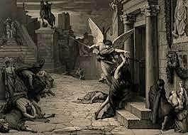 Comme certains pensaient que la peste était due à la colère d'Apollon, ils organisèrent de grande procession pour tenter de calmer le dieu. Ils se réunirent en grand nombre, ce qui, au lieu d'arrêter l'épidémie ne fit que l'aggraver... -
