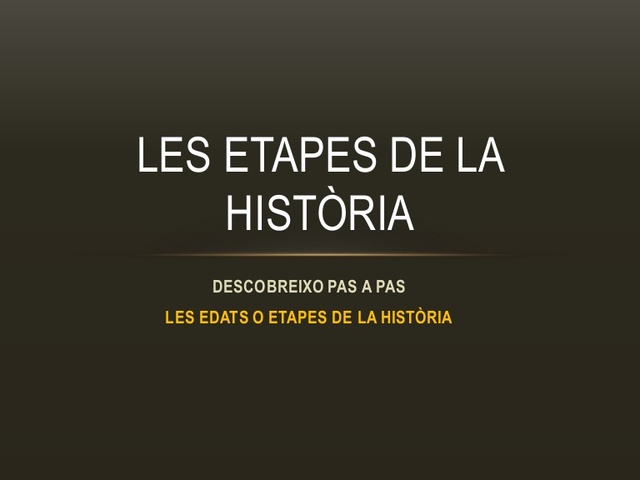Es divideis en tres parts, Paleolític( es caracteritza per la caça, pesca i recol·lecció. Eren nomades. Neolític (8000 aC), es caracteritza pel descobriment de l'agricultura( o sigui es van tornar sedentaris a causa d'aquest descobriment) i al final l'edat dels metalls( caracteritzada pel descobriment del metalls) -
