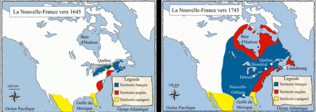 Le territoire de la Nouvelle-France s'étend de Terre-Neuve jusqu'au Mexique.
