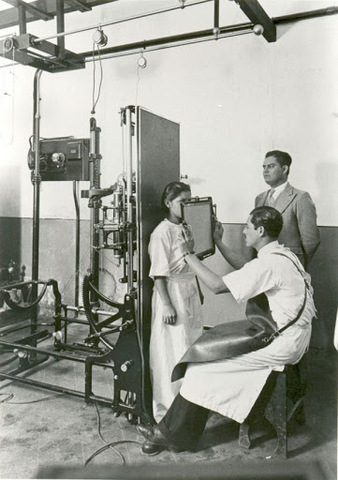 debido a los efectos negativos de los rayos x, empezaron a instalar pantallas y a recubrir los tubos con plomo al igual que las personas encargadas de realizar las radiografías comenzaron a utilizar guantes, delantales plomados y en casos muy extremos escafandras para proteger el rostro de la radiación.