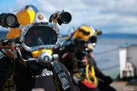 Por un lado, se desarrollaron equipos conectados a la superficie mediante un tubo. Estos serían los precursores del equipo umbilical moderno utilizado por los buceadores profesionales que bombea aire desde la superficie hasta la escafandra del buceador. -