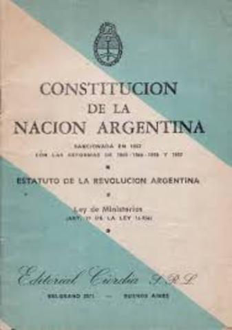 El 28 de junio de 1966, mediante un golpe de Estado, asumió el poder una junta militar que se autodenominó Revolución Argentina y dictó un Estatuto de la Revolución Argentina integrado por 10 artículos que tenía preeminencia sobre la Constitución Nacional de 1853, con las reformas de 1860, 1866, 1898 y 1957, que permaneció vigente, aunque sin el carácter de norma suprema. El Estatuto de la Revolución Argentina quedó de hecho sin efecto el 25 de mayo de 1973, al asumir las autoridades democrática