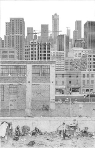 Después de un gran incendio reconstruyen la ciudad,esta vez con elementos en acero y concreto.