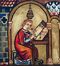 El creador de la transcripción del Cantar del Mío Cid fue Per Abbat en el año el 1207. Consta de tres capítulos, "Cantar del destierro". "El cantar de las bodas" y "El cantar de la ofrenta en el robledal de Corpes" En ellos se describe el exilio del Cid, el perdón del rey y las bodas de sus hijas con infantes, así como la ofrenda de el maltrato que estos infligen a ellas.