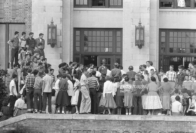 An angry mob of over 1,000 whites gathers in front of Central High School, while nine African American students are escorted inside. The Little Rock police remove the nine children for their safety. President Eisenhower calls the rioting “disgraceful” and ordered federal troops into Little Rock.
