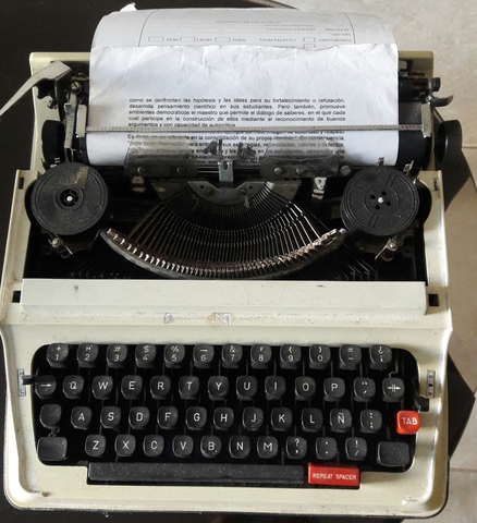 La máquina de escribir es un dispositivo mecánico, electromecánico o electrónico, con un conjunto de teclas (llamadas tipos) que, al ser presionadas, imprimen caracteres en un documento, normalmente papel. La persona que opera una máquina de escribir recibe el nombre de mecanógrafo.