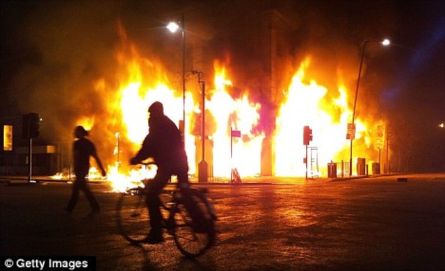 Rioting is taking place in Ealing, west London, where the windows of a Tesco supermarket have been put out, a car is on fire and rubbish is strewn in public areas. There is also a fire in Haven Green park, opposite Ealing Broadway Tube.
