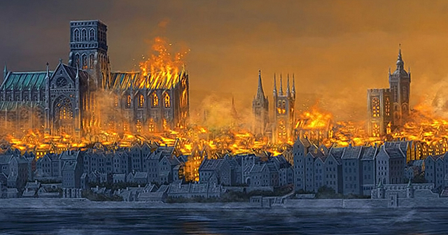 (4:00 a.m.) London`s mayor, Sir Thomas Bloodworth wast advised to demolish the houses.
