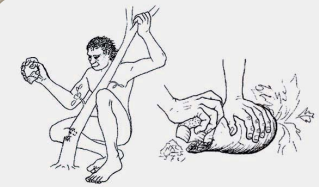 Homo habilis dando uso a la pieda para hacer herramientas de corte hace aproximadamente 2.5 millones de años.
