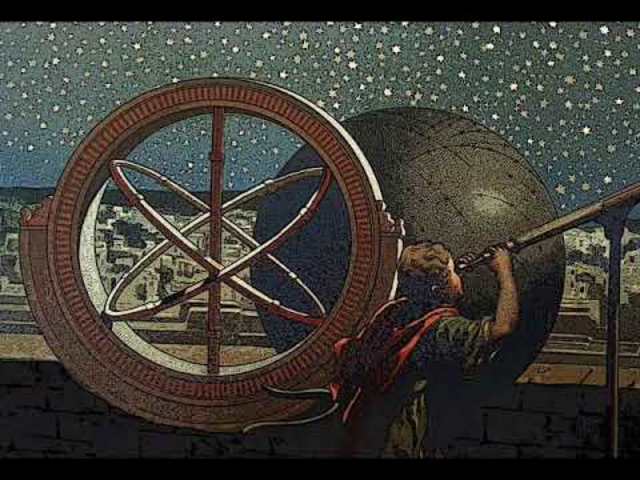 Galileo poniendo en uso su telescopio usa este y descubre las cuatro lunas de Júpiter, además observa que nuestra Luna no tiene una superficie lisa.