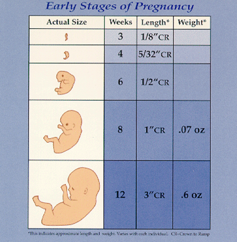 - Embryo is about 1 inch long @ 8weeks. -By 12weeks fetus makes crying motion but no sound and sucks it's thumb.