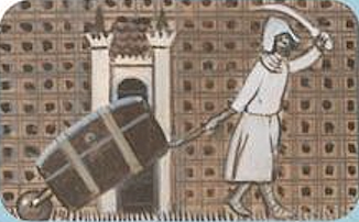 Maletes amb rodes per portar armes a Palestina durant les "Cruzadas". Fetes amb fusta.