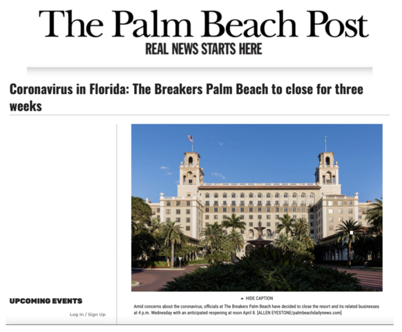 MARCH 18th, The Breakers Closed in advance to COVID- 19 By CliffCrumpton Mar 19, 2020 23,206 Pounds of food donated to the PBC Food Bank
